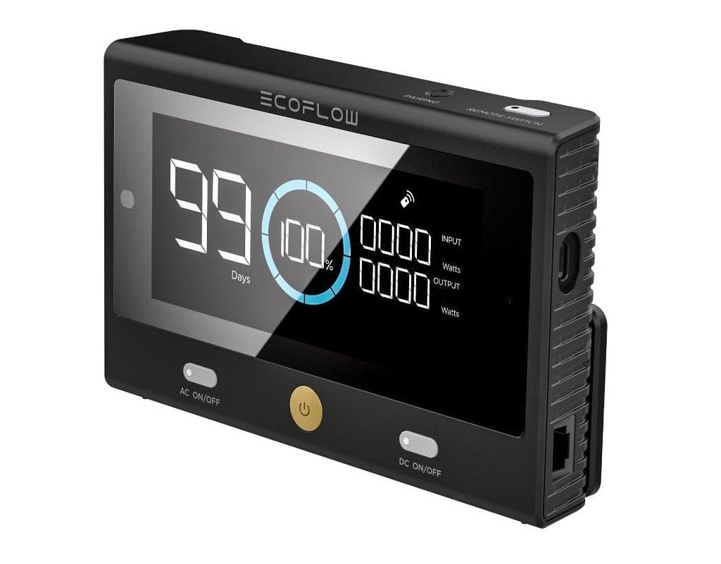 Esimene kaugjuhtimispult kaasaskantavatele akujaamadele, loodud DELTA Pro jaoks. Ideaalne, kui soovid DELTA Pro paigutada näiteks garaai, panipaika või raskesti ligipääsetavasse kohta. Kaugjuhtimispult ühendub DELTA Pro’ga üle Bluetooth’i või ethernet kaabliga ja dubleerib akujaama ekraani ning sisse-välja lülitamise nupud.