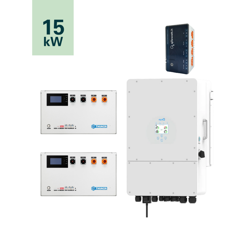 Deye hübriidinverterid on suunatud energia sõltumatuse ja akusalvestuse optimeerimisele, pakkudes kvaliteetset lahendust koos 5-aastase garantiiga ja hea IP reitinguga. Neid iseloomustab suurepärane päikesejõudlus ja võime taluda kõrgeid koormusi ilma jahutusventilaatorite sekkumiseta. Thunor 16kWh LiFePo4 akupank on toodetud Eestis ainult dokumenteeritud A-klassi defektivabadest LiFePo4 akuelementidest. Thunor akud on varustatud küttemattidega, et eelsoojendada akuelemendid ebasoodsa temperatuuriga tingimustes õige töötemperatuurini. Tänu Qilowatt MODBUS R2 inverteri nutikale juhtseadmele töötab see akukomplekt targa tarbimise põhimõttel. Qilowatt MODBUS R2 jälgib elektribörsi hindasid ja laeb akud täis kõige soodsamal ajal ning ajastab akudest tarbimise või võrku müügi elektrihinna tiputundidel.